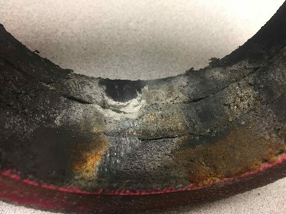 Example of packing failure due to loss of lubrication.